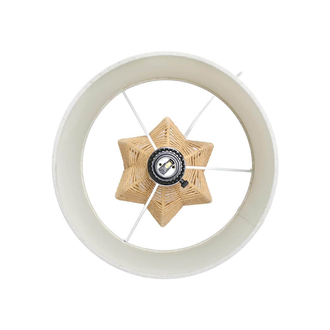 Layers of horizontal linear patterns made primarily of paper rope and metal create the impression and style of this vintage inspired table lamp. Paired with a light beige linen shade, this combination is bound to compliment the existing fashion upheld in your home. This is the perfect piece to accent your home décor, whether in your living room, on your nightstand in your bedroom, or office!